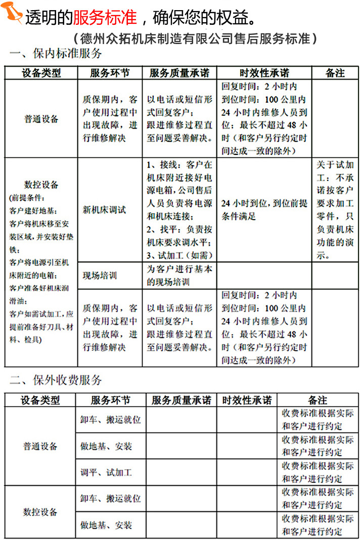 01 眾拓機(jī)床,質(zhì)保一年。質(zhì)保期內(nèi)免費(fèi)維修、零配件免費(fèi)更換;